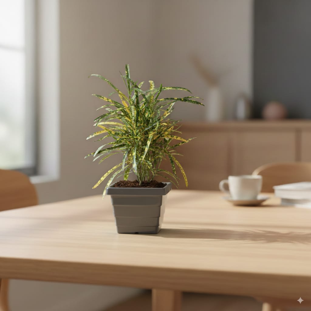 Chironji Croton In 4 Inch Grey Orchid Square Plastic Pot