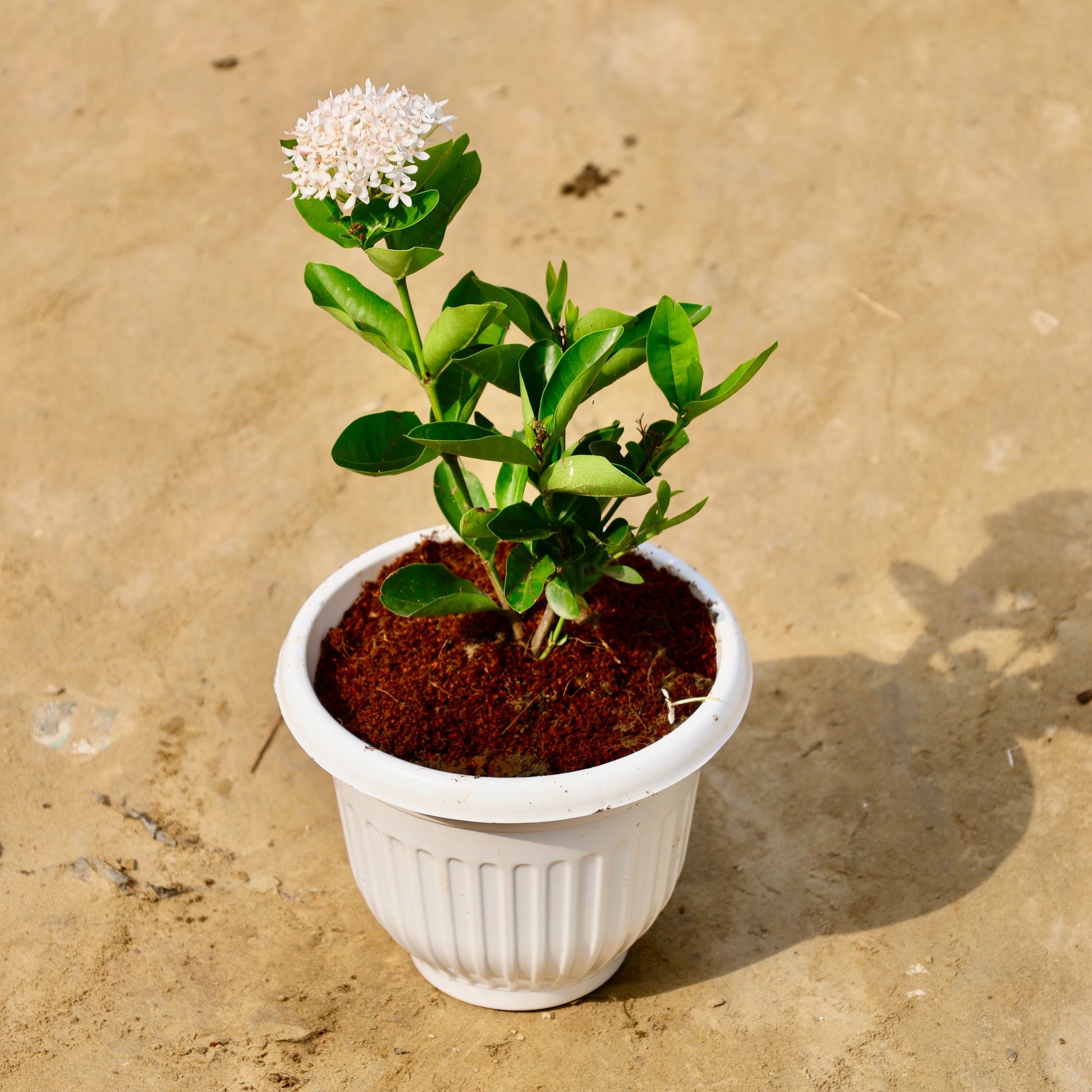 This Ixora dwarf white plant, presented in an 8-inch white olive pot, offers a compact, elegant addition to any garden or indoor space. Known for its dense clusters of small, pristine white flowers, it thrives in bright, indirect light and well-drained soil. The stylish white olive pot not only complements the plant’s delicate blossoms but also ensures optimal root development, making it an ideal choice for both novice and experienced gardeners seeking a refined and manageable flowering shrub.