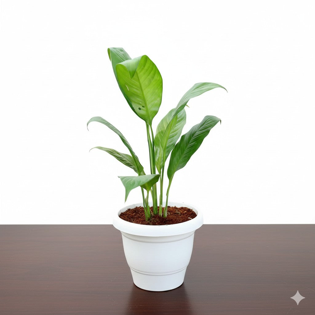 Peace Lily in 8 inch white classy plastic pot
