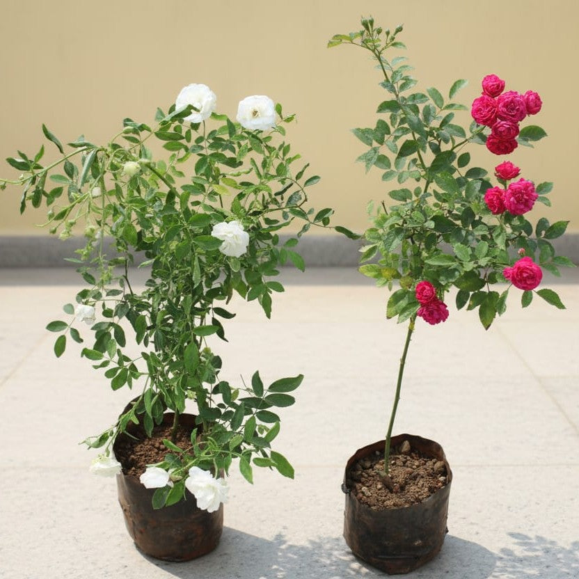Set of 2 Miniature / Button Rose White and Red in 8 Inch Nursery Bag